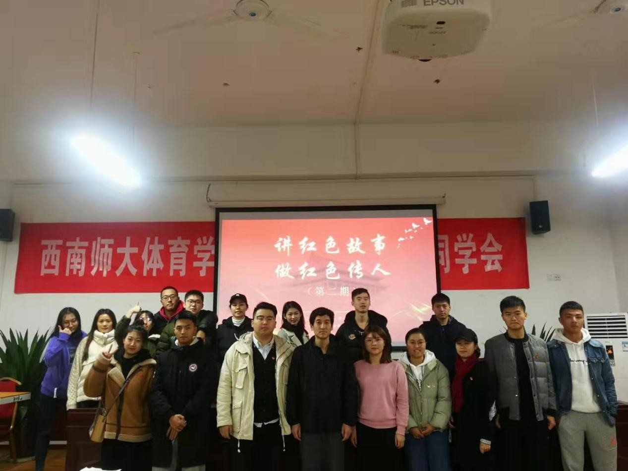 体育学院研究生二支部深入贯彻落实习近平总书记视察重庆时提出的“重庆要运用这些红色资源、教育引导广大党员、干部坚定理想信仰,养成浩然正气”的要求,利用“三会一课”等形式,开展主题为“讲红色故事,做红色传人”的活动。旨在讲红色故事,弘扬革命精神,培育党员同志和积极分子的爱国主义精神,争做红色传人。