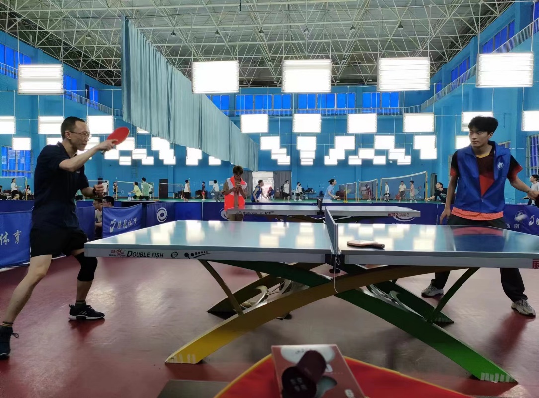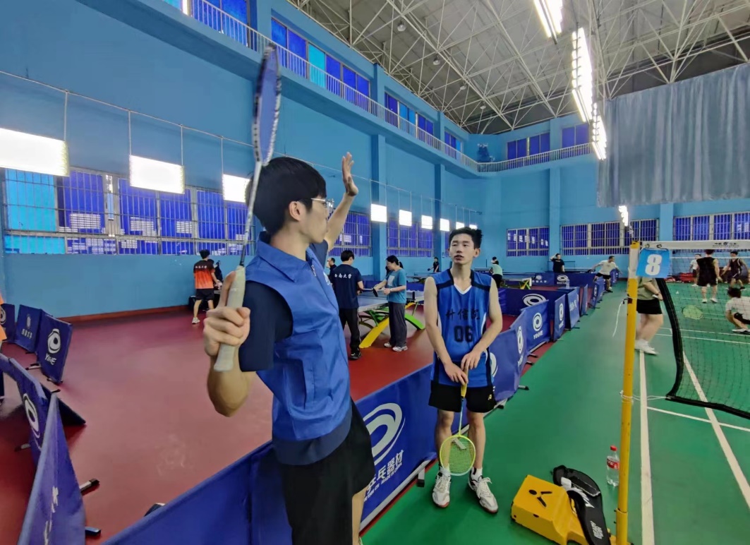 活动日当天,在中心体育馆、综合体育馆、乒羽馆、第三运动场、第五运动场等各大体育场馆,到处都是热爱运动的教职工积极锻炼的身影,也到处可见体育学院师生志愿者的身影,他们耐心细致地向教职工介绍健身知识、示范技术动作,讲解技术要领,不时有爱好者因为“突然领悟”而开心不已。一教一学之间,不觉运动氛围更加浓厚起来。