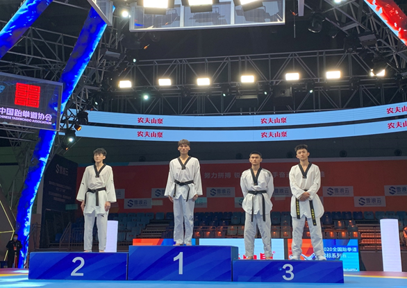 2020年全国跆拳道锦标系列赛第一站,25日在无锡太湖国际博览中心落幕,我院跆拳道队员在比赛中获得三金一银一铜优异成绩。
