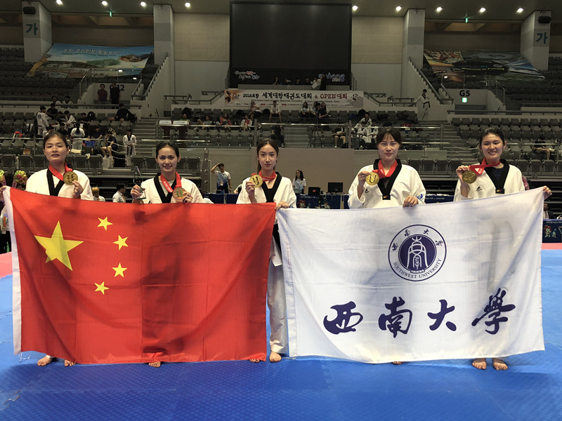 2018年世界大学生跆拳道锦标赛赛场再次传来喜讯:代表中国大学生出战的英国上市公司365跆拳道队5名女队员勇敢拼搏,夺得女子团体冠军,为中国代表队收获此次赛事的第六块,也是最珍贵的金牌。