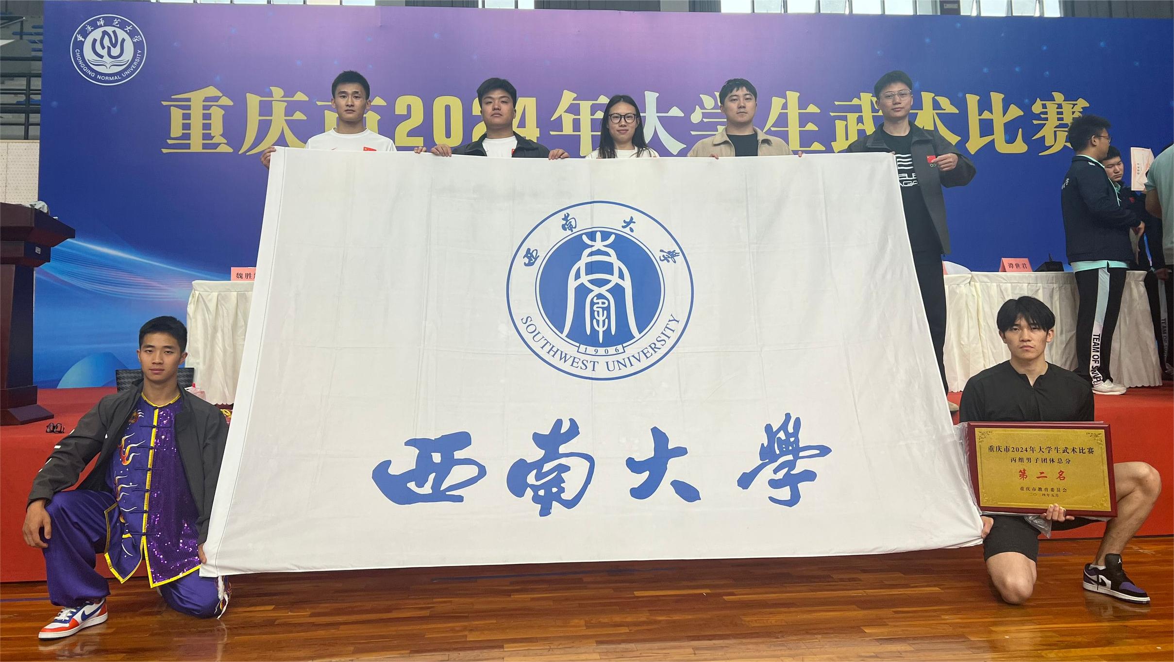 5月9日至5月12日,重庆市2024年大学生武术比赛在重庆师范大学举办。学校代表队荣获丙组男子自选南拳、自选长拳第一名,丙组男子自选棍术、男子对练第二名以及5个单项第三名,并在丙组男子团体中荣获第二名。