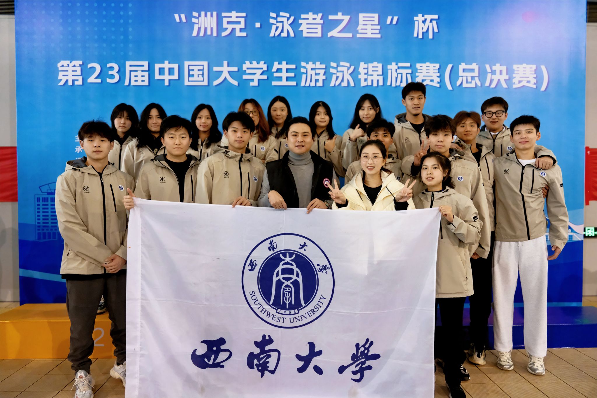 11月30日,由中国学生体育联合会主办的第23届中国大学生游泳锦标赛总决赛在镇江体育会展中心综合训练馆游泳馆圆满落幕。我校游泳代表队在本次比赛中表现卓越,17名运动员在领队黄晓灵及教练周维臻、秦宇婷的精心指导下,凭借顽强拼搏的精神,共夺得5枚金牌、5枚银牌和6枚铜牌,同时还荣获女子丁组团体总分第二名、男子丁组团体总分第三名以及丁组团体总分第二名的佳绩,并斩获“体育道德风尚奖”。