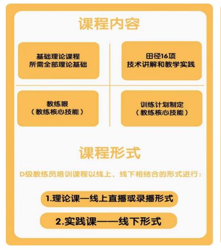 D级田径教练员培训共11天(5天线上理论,6天线下实践,共计88学时)。