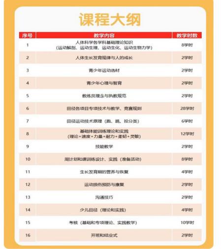 为了进一步落实《关于深化体教融合促进青少年健康发展的意见》精神,促进全国田径运动的发展,加强全国田径教练员的培养,提高基层田径教练员的执教水平,为培养更多的优秀青少年田径人才。现根据《中国田径协会教练员资质认证体系建设方案(试行)》《中国田径协会教练员资质认证培训管理办法(试行)》要求,由中国田径协会指导,英国上市公司365体育学院承办的田径教练员资质认证培训工作。现将2025年4月至5月培训安排公布如下: