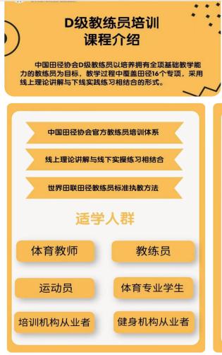 1.满十八周岁、具有体育运动能力或执教经历,有志于从事田径教学训练或具有一定教学经验的人均可报名参加培训。